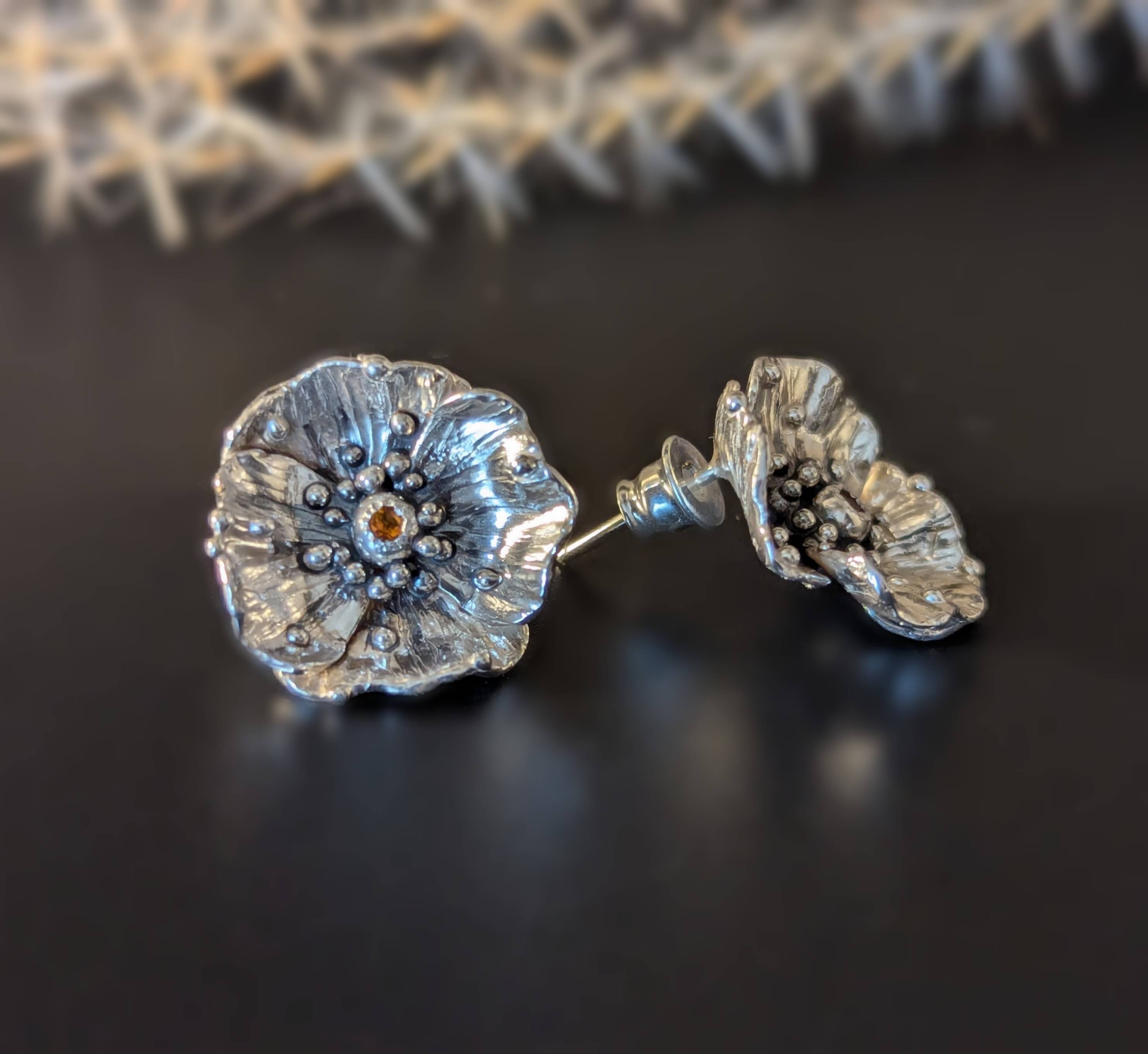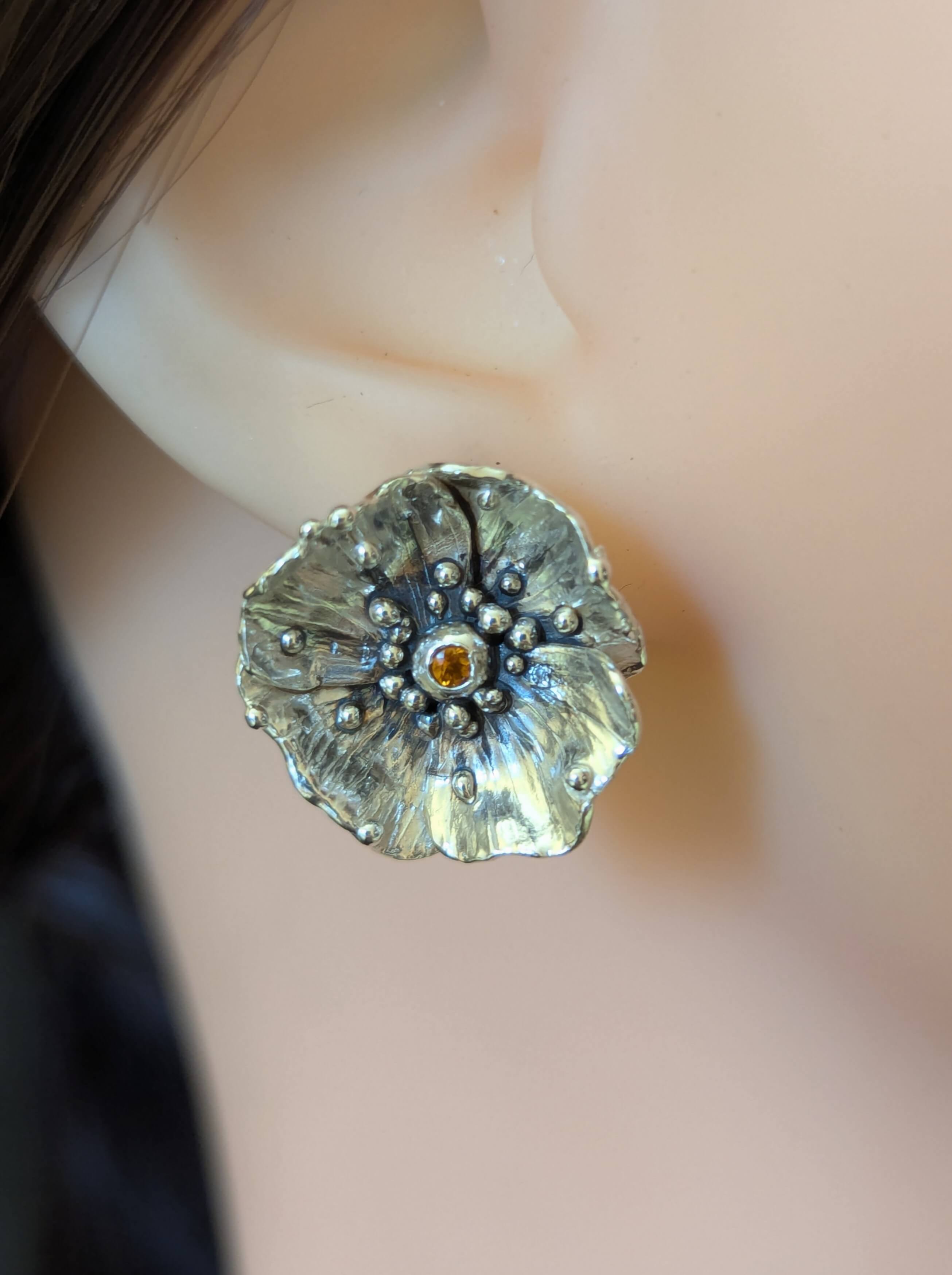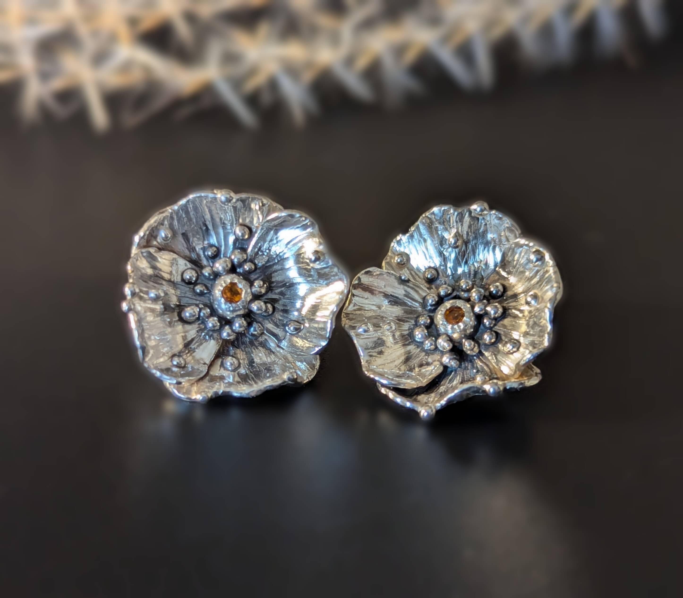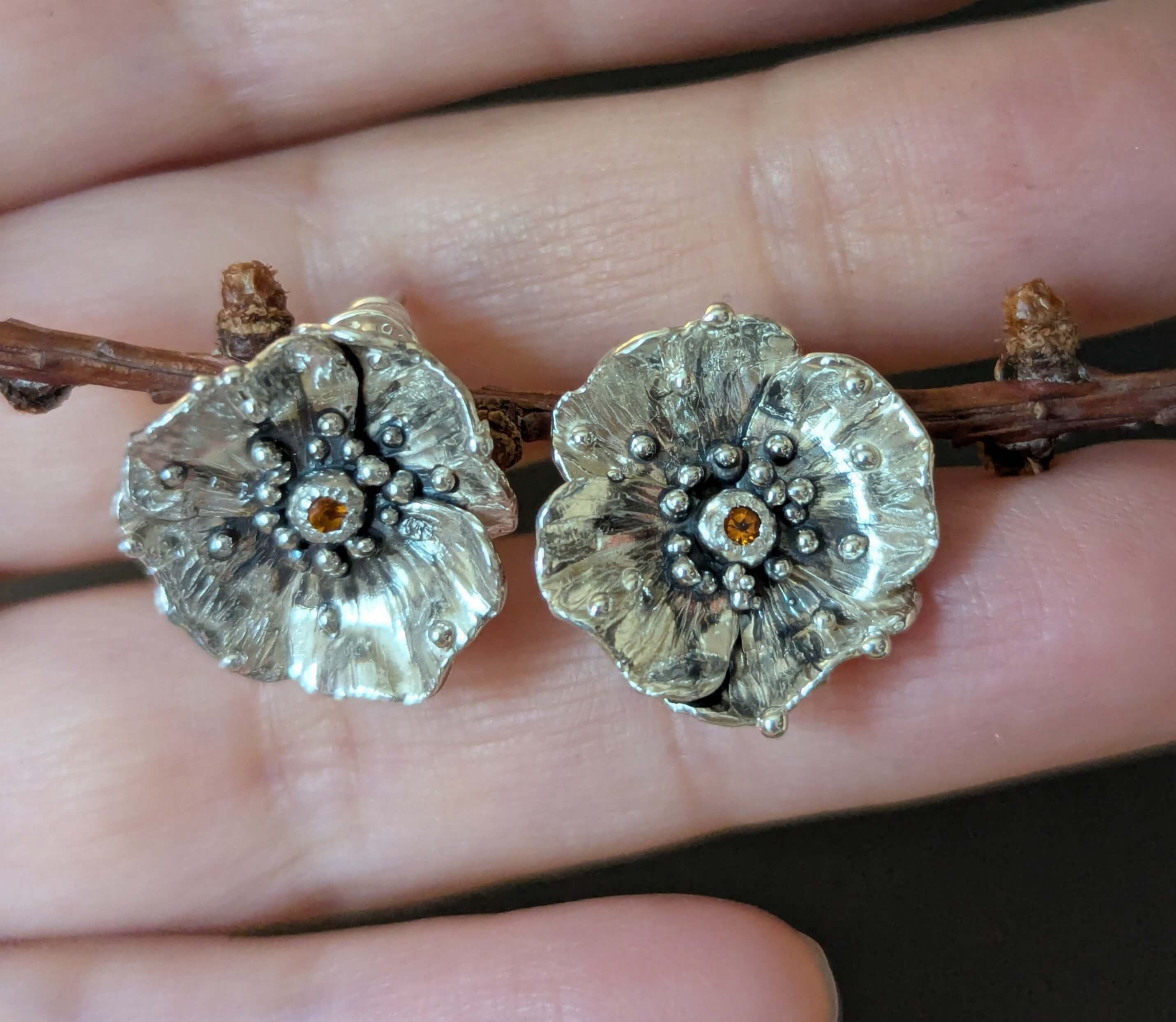 Auskarai su madeiros citrinais "Saulėtos aguonos"