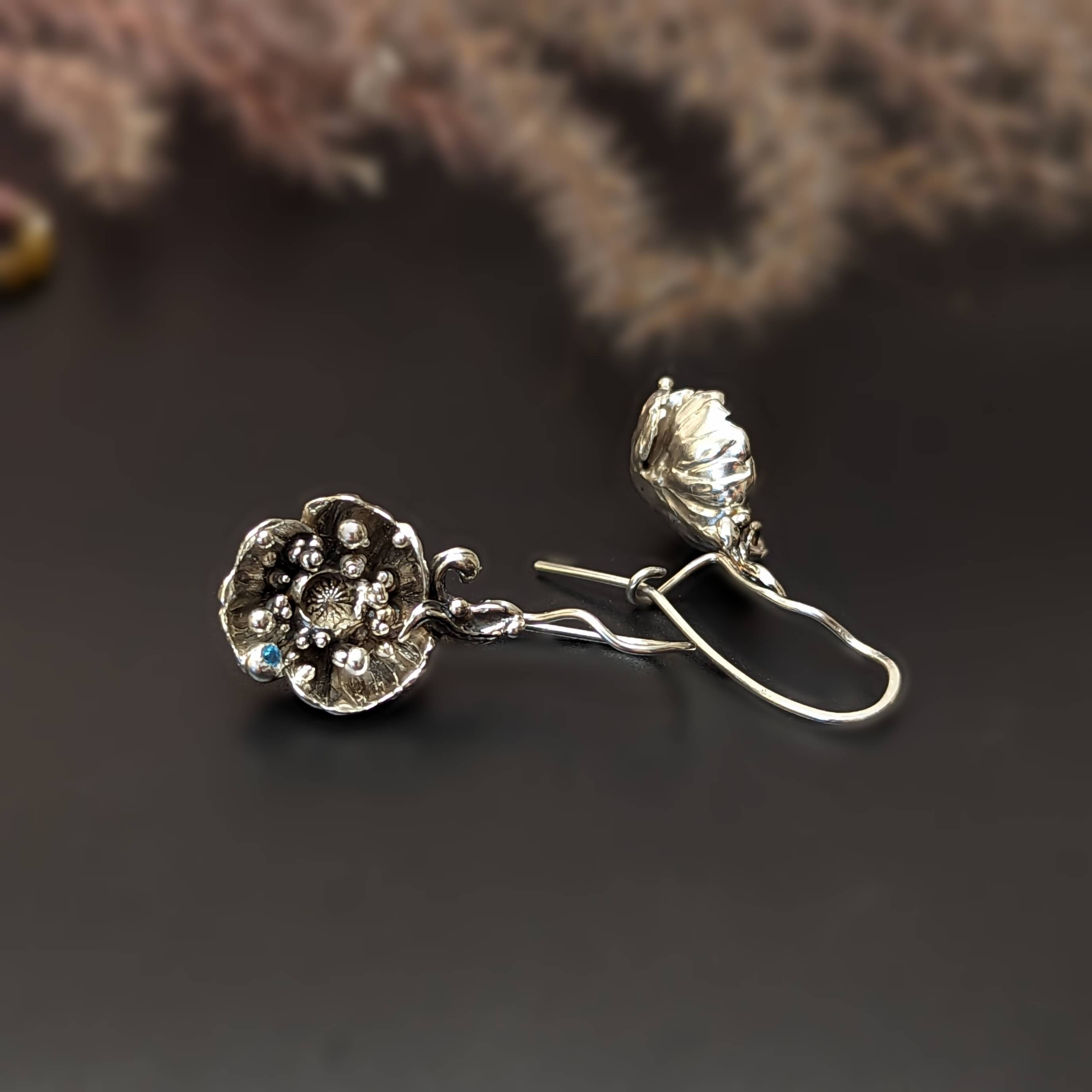 Žaismingi kabantys gėlės formos auskarai .